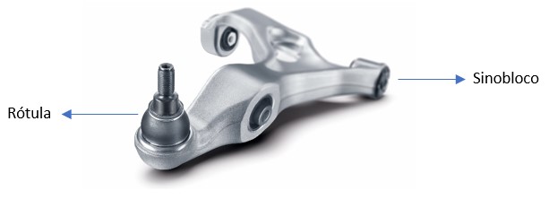 Cada veículo tem um par de braços de suspensão no eixo dianteiro e outro no eixo traseiro. As peças complementares que fazem a união do braço ao chassi e às rodas, são os sinoblocos (clique para ver a nossa newsletter sobre este componente) e a rótula.