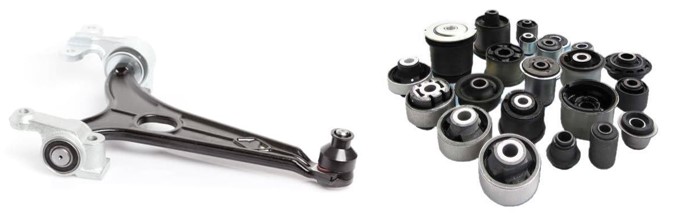 Um braço de suspensão do veículo é uma articulação que une o chassi e a suspensão que suporta a roda. A sua fixação a estas estruturas é realizada através de um casquilho composto por metal e borracha, designado por sinobloco.